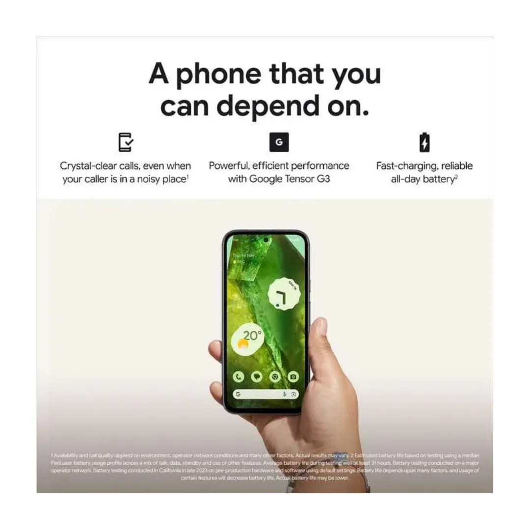 Google Tensor G3 is the next-gen processor custom-built for Pixel. It’s Google’s fastest, most efficient and secure chip yet – the same chip that’s in Pixel 8 and Pixel 8 Pro. It powers Google AI and advanced machine learning for amazing photo and video quality, improved audio on phone calls, speech recognition and security. It makes Pixel 8a fast, efficient, and helpful.