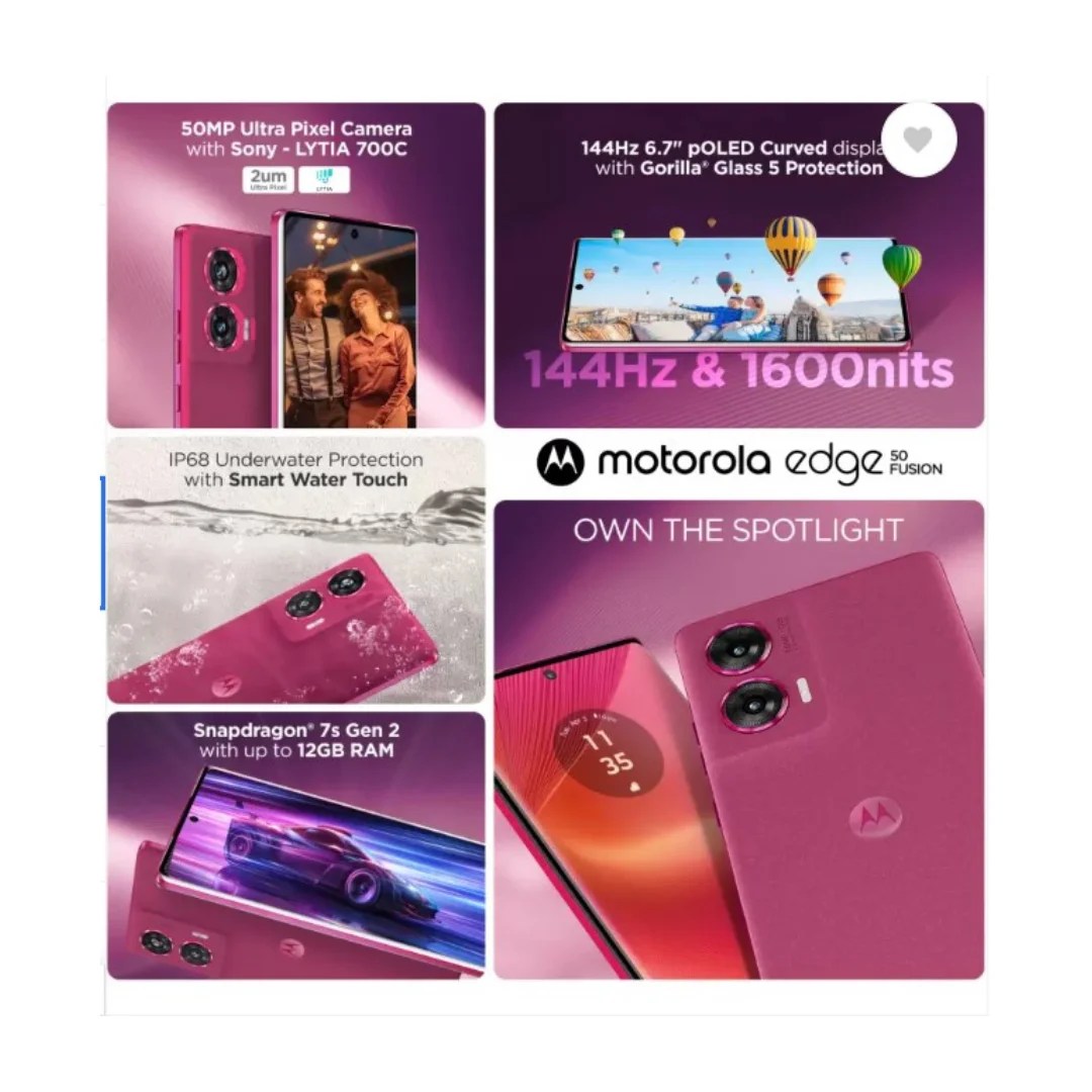 Motorola edge 50 fusion is designed to capture its best shots at night with advanced features. The 50 MP main camera uses a powerful Sony LYTIA LYT-700C sensor to capture moments ultrafast with low noise even in dark environments. Who thought Night photography could get faster, accurate and focused. An advanced all-pixel focus technology on the Motorola Edge 50 Fusion elevates night photography by making it 32x more focused. While the Ultra Pixel sensor captures more light with larger 2.0µm pixels, the OIS automatically smoothens involuntary hand motion to give you a shake free video experience.