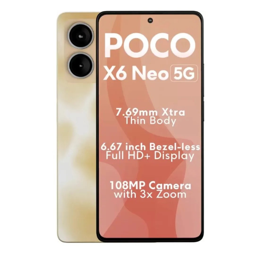 The POCO X6 Neo – a sleek fusion of design and performance. With a near-bezel-less 7.69 mm slim body, this phone captivates with immersive visuals on its rare 120 Hz AMOLED display protected by Corning Gorilla Glass 5. The dual-camera setup, featuring a 108 MP main lens with 3x in-sensor zoom, ensures stunning photo details. Powered by a MediaTek Dimensity 6080 processor, it effortlessly handles multitasking demands. The 5000 mAh Weekend Battery promises worry-free usage with a standby time of 26.5 days. Dolby Atmos-supported surround sound, a 3.5 mm headphone jack, and an IP54 rating for dust and water resistance complete this exceptional smartphone, redefining your mobile experience.